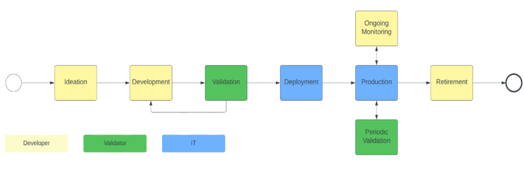 (This diagram illustrates the different stages in the model lifecycle, where each stage requires sharing of accurate documentation that can be challenging when done manually.)